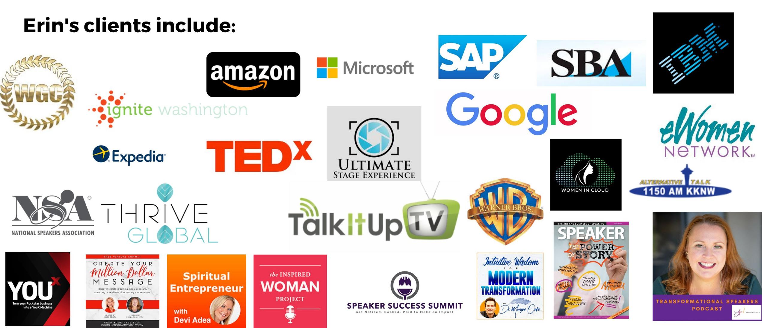 I have been a speaker for years, I have spoken in front of thousands and thought I knew how to impact audiences. Erin showed me that there were subtle nuances that I was doing that was diminishing my impact, with a few fixes, she was able to support my mission, and deeply connect with all audiences. I love helping speakers get their unique message out to the world and create the impact they dream of creating. I have been able to speak in companies and on bigger stages since stating to work with Erin.